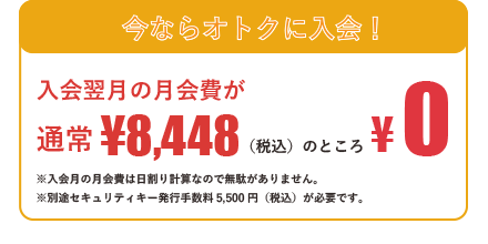 はい。入会の際、一人につき5,500円のセキュリティキー発行手数料がかかります。